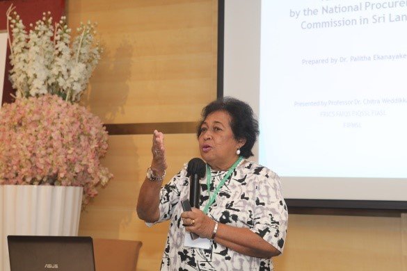 Dr. Palitha Ekanayake and Professor Chitra Weddikkara presented the Value For Money (VFM) by the National Procurement Commission (NPC) in Sri Lanka. VFM relates to economy efficiency and effectiveness to examine effectiveness, control cost and efficiency. The principle of VFM is to meet the expectations from customers with the optimum combination of whole life cost and quality or fitness for purpose. Prof. Chitra further introduced the guidelines for achieving VFM and also obstacles in the achievement of VFM.